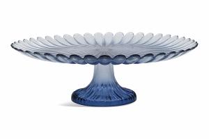 Cake Plate Blue Glass Scalloped Edge