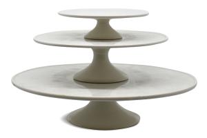 Cake/Pastry Stand Strainless Steel w/White Enamel Plates