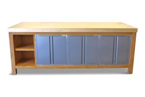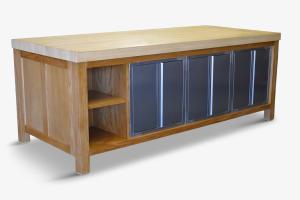 Island/Work Table Maple w/Butcher Block Top and Stainless Cabinet Doors