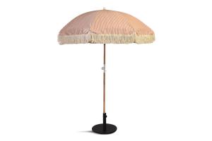 Umbrella Patio/Beach Pink/Beige Mini Stripe w/Fringe (Stand Not Included)