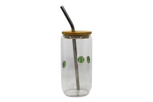 Tumbler Clear Glass w/Tennis Balls & Lid and Chrome Straw