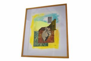 Print "The Mirage" Collage & Acrylic Paint on Paper by Don Diers w/Natural Frame