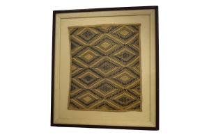 Basket Woven Palm Red Stripes & Black Leather Handles