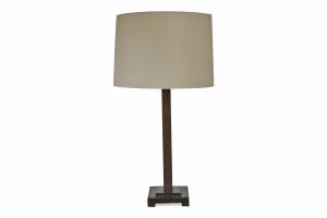 Lamp Brown Wood Column w/Drum Shade