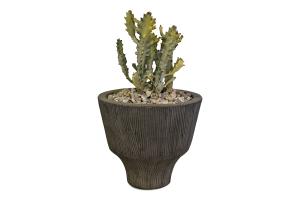Cactus Live Euphorbia Dragon Tree Bones in Grey Ribbed Planter