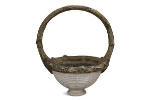Planter Vintage Faux Bois Concrete Basket w/White Bottom & Large Handle