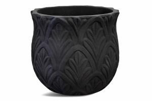 Planter Green Glazed w/Checkered Indents & Brown Bottom