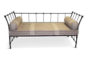 Daybed Black Iron Frame w/Natural Mattress & 2 Bolsters Striped