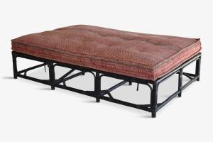 Ottoman/Daybed Black Rattan Red Vintage Fabric